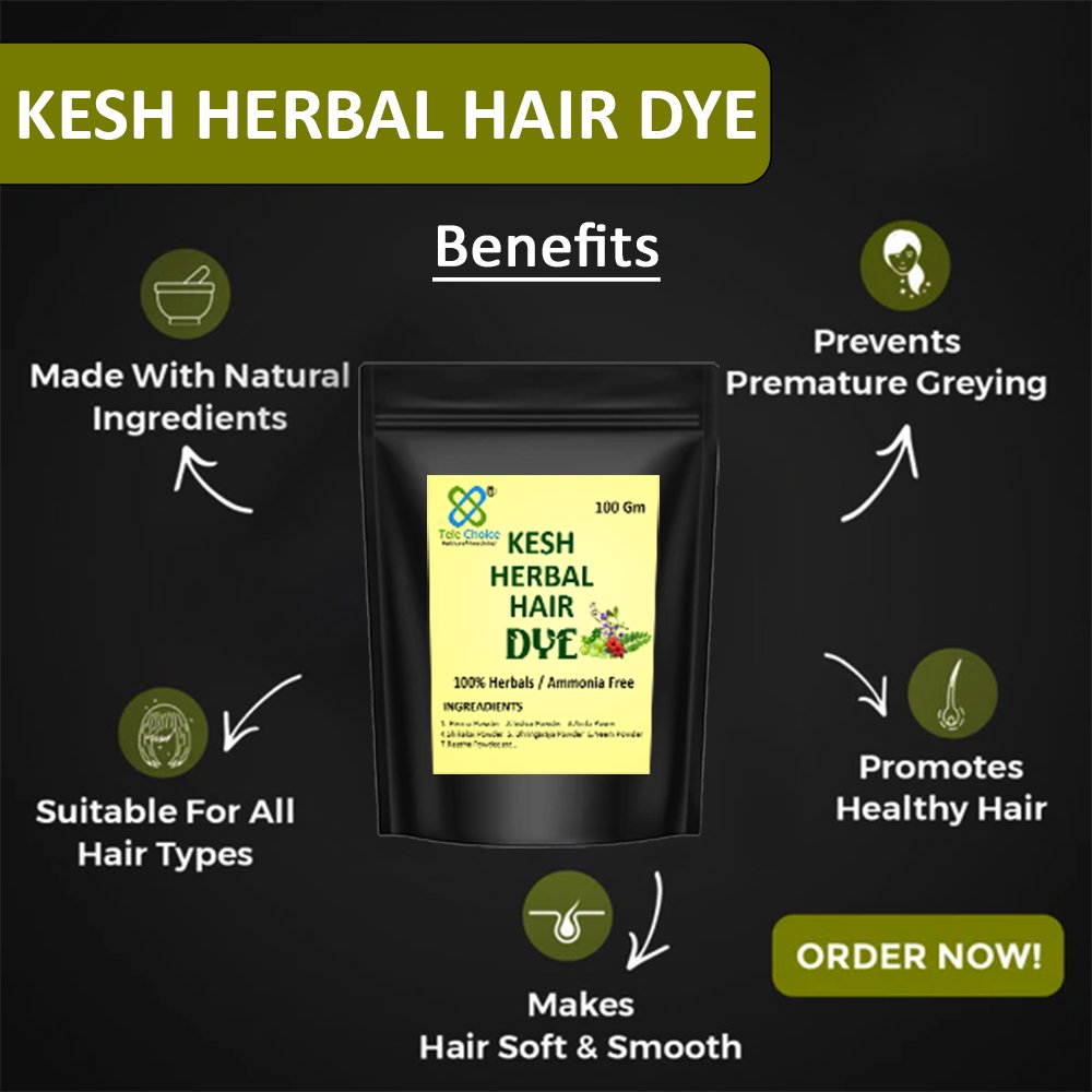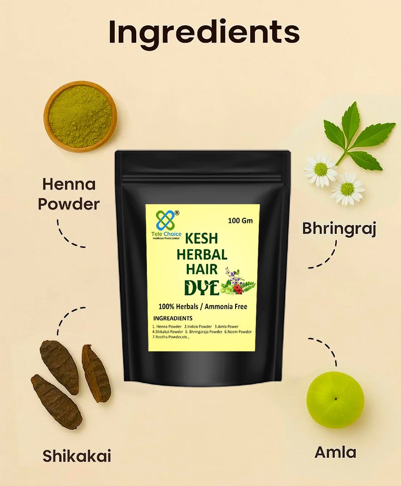 Kesh Herbal Hair Dye Powder β 100% Natural & Chemical-Free β Safe Hair Color for Men & Women Get rich, deep black hair the natural way. Our Kesh Herbal Hair Dye Powder is made with a powerful blend of botanical ingredients that nourish, condition, and color your hair β without the harsh chemicals. 100% Natural & Organic Ingredients β Made from a blend of Henna, Indigo, Amla, Bhringraj, Brahmi, Lawsonia Inermis and Neem. No ammonia, no PPD, no peroxide, and absolutely no artificial colors. Safe for All Hair Types & Genders β Ideal for men and women with normal, dry, or sensitive scalp. Can be used on grey, black, brown, or pre-colored hair. Long-Lasting, Deep Black Color β Achieve a natural-looking, glossy black tone that lasts for weeks without fading. Promotes Hair Health β Strengthens roots, adds volume, improves scalp circulation, and reduces hair fall β all while giving you radiant color. Cruelty-Free & Eco-Friendly β Not tested on animals. Biodegradable and packed in recyclable eco-safe packaging.
